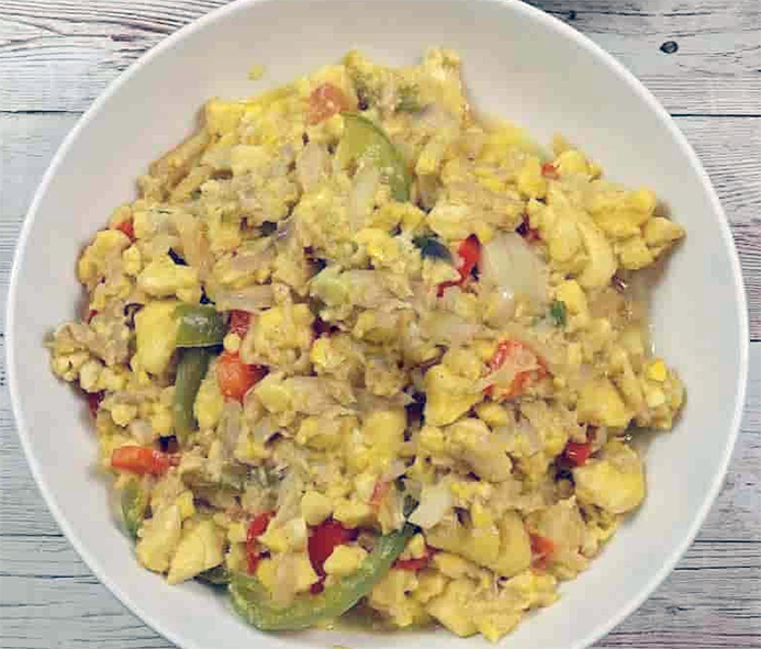 Ackee and Saltfish is a tradition Jamaican recipe for a classic fry of cooked and flaked salt cod with onion, bell pepper and the national fruit, ackee that's typically served for breakfast or as an accompaniment. The full recipe is presented here and I hope you enjoy this classic Jamaican version of: Ackee and Saltfish.