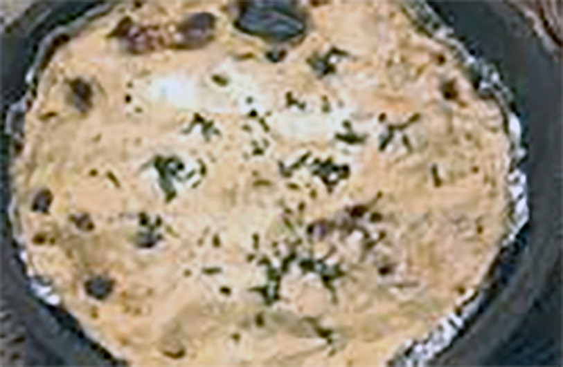 Transfer to an oven pre-heated to 200°C and roast for about 8 minutes. Meanwhile, form the 'royal sauce'. Whisk together the eggs, milk and cream. Pour over the meat, until completely covered then return to the oven and cook for 5 minutes more, or until lightly golden. Ladle into bowls, garnish with the parsley and serve.
