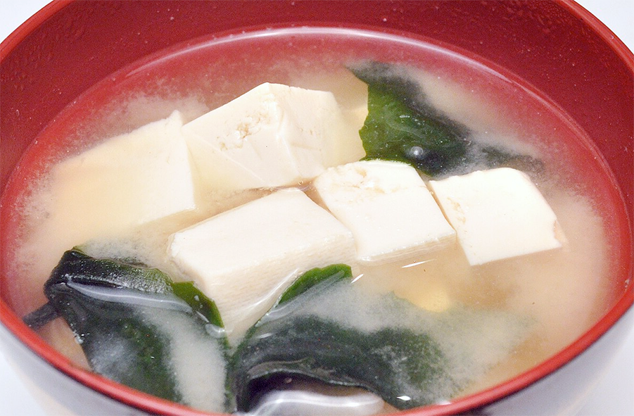 As well as grilled fish, steamed rice, seaweed, eggs and green tea no traditional Japanese breakfast would be without a bowl of miso soup. This is a typical breakfast version that contains bean curd, dried sardines and wakame seaweed.