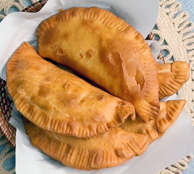 Dip your finger in water and brush the edge of the dough. Fold the dough over the filling to meet the opposite side, forming a half-moon, and press the dough ends together. Firmly press down the two edges to become seal, and decorate the new crust with the tines of a fork. Make sure the pastry is completely sealed all the way around.