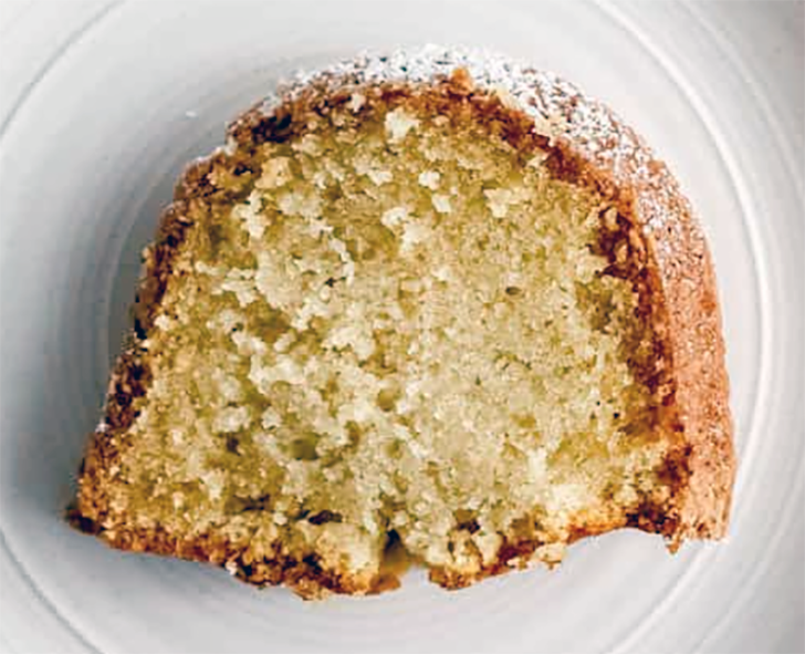 After you remove the delicious rum cake from the pan, allow it to cool completely on the rack before slicing to serve.