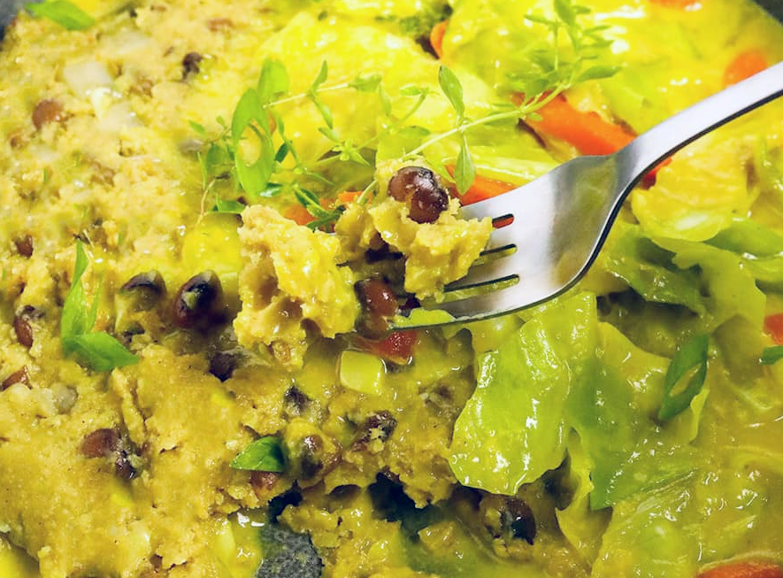 Originally from Jamaica, Turn Cornmeal is a seasoned cornmeal cooked in coconut milk with pigeon peas, aromatic herbs, and spices. It is flavourful and quite a tasty dish on its own or served with a stew or curry. The ingredients are turned half-way through the cooking process, hence the name. As corn/maize meal is a staple on the British Virgin Islands it's probably not surprising that this Jamaican recipe has entered the local culinary repertoire.