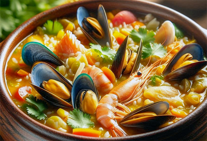 Chilean Seafood Casserole is an explosion of marine flavours that represents the richness of the Pacific coast. This dish combines the freshness of seafood with an aromatic and comforting broth.