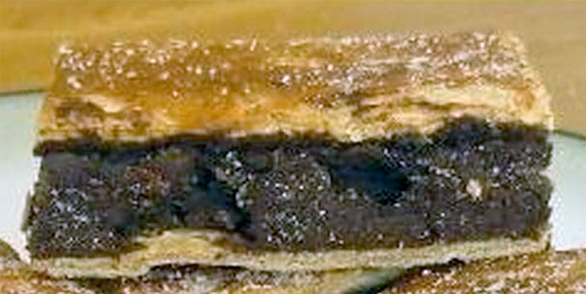 Transfer to an oven pre-heated to 200°C and bake for about 20 minutes, or until the pastry is golden and cooked through. Allow to cool and when cold cut with a sharp knife into the squares you marked out earlier.