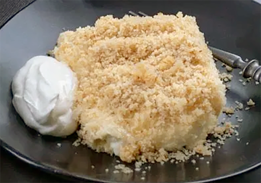You can serve the štrukli when cooked in the salted water — though there are also a few other ways of serving them. One way is to bake the strukli covered with sour cream for 15 minutes at 200°C; alternatively heat a little butter in a pan with some breadcrumbs and add the strukli to the pan for a minute... just enough time to coat them with the buttery crumbs.