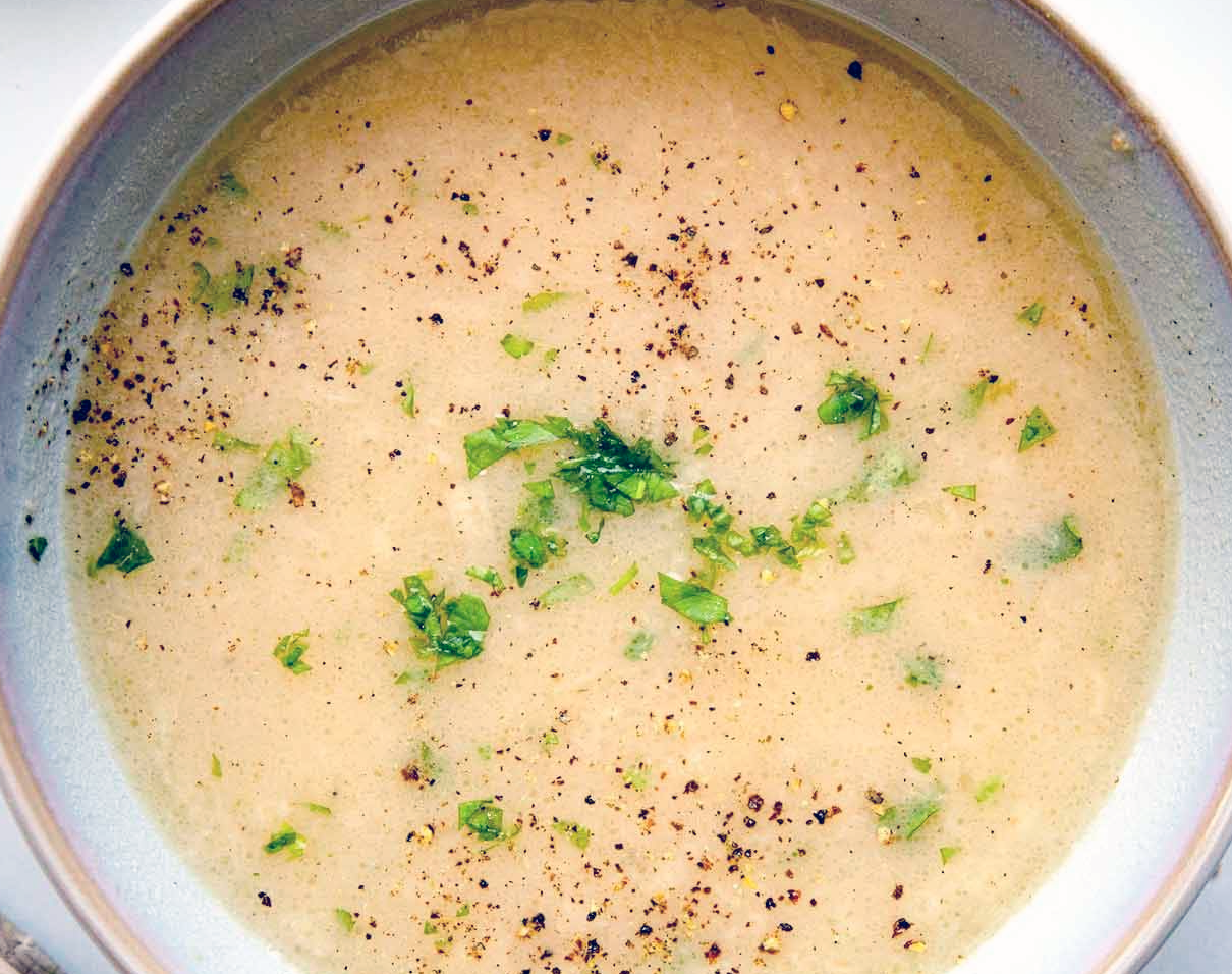 Once nicely thickened, divide the soup between four warmed soup bowls.