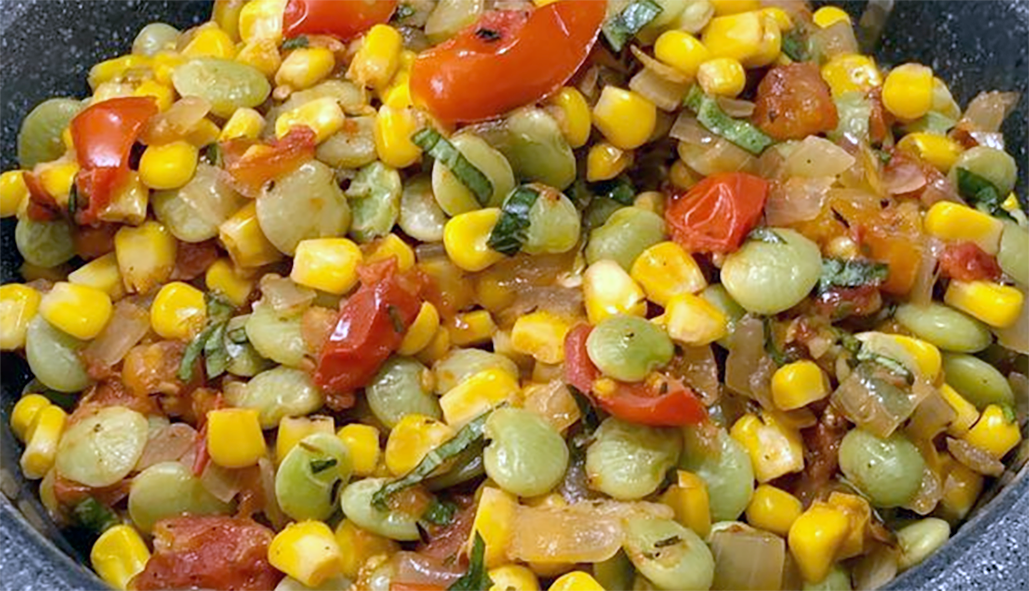 Succotash is a traditional Equatorial Guinean recipe for a classic dish of fried lima beans, corn kernels, tomatoes, herbs and onion. The full recipe is presented here and I hope you enjoy this classic Equatorial Guinean version of: Succotash.