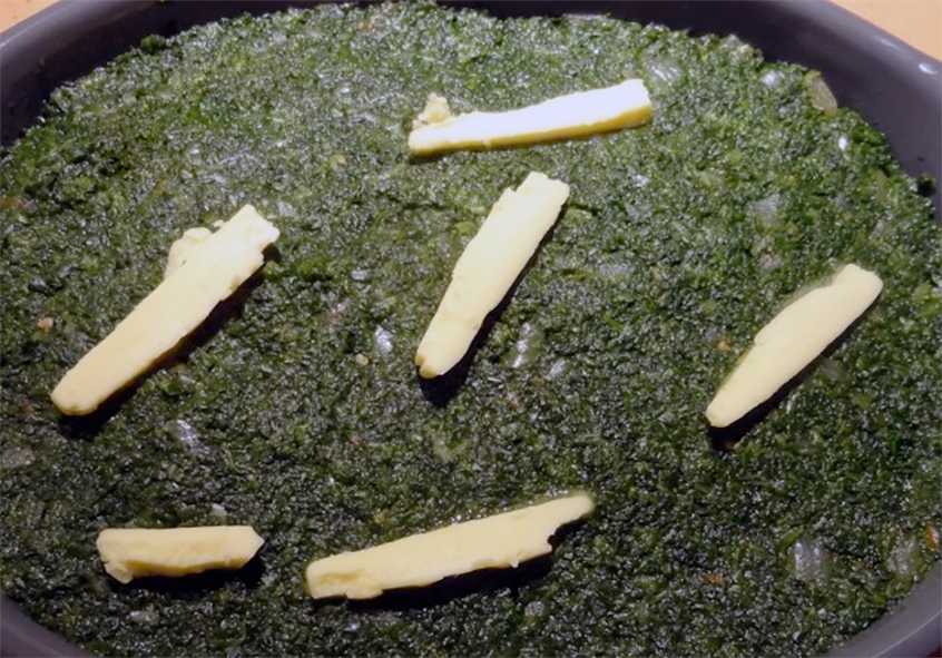 Season the cod with black pepper and ground Guinea pepper then mash with a fork. Arrange the cod in the base of a baking dish and spread the cassava leaf mixture over the top. Sprinkle a little of the oil over the top then transfer to an oven pre-heated to 200°C and bake for 15 minutes.