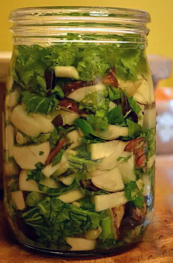 Fermented Mixed Vegetables is a modern American recipe for lacto-fermented wild vegetables and greens with garlic, ginger and chilli. The full recipe is presented here and I hope you enjoy this classic Fusion version of: Fermented Mixed Vegetables.