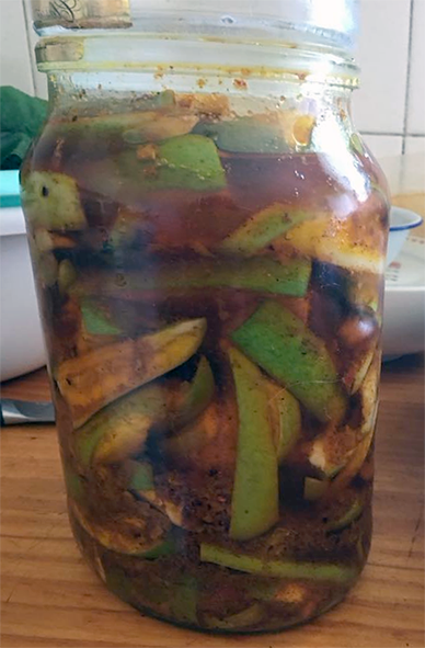Fijian Mango Pickle is a traditional Fijian recipe for a spiced mango pickle preserve that makes a wonderful condiment. The full recipe is presented here and I hope you enjoy this classic Fijian version of: Fijian Mango Pickle.