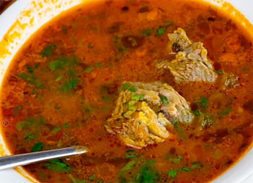 Kharcho (Georgian Beef and Rice Soup) is a traditional Georgian recipe for a classic beef-based soup with tomatoes and herbs cooked with rice and soured with tamarind that's flavoured with chillies and thickened with walnuts. The full recipe is presented here and I hope you enjoy this classic Georgian version of: Georgian Beef and Rice Soup.