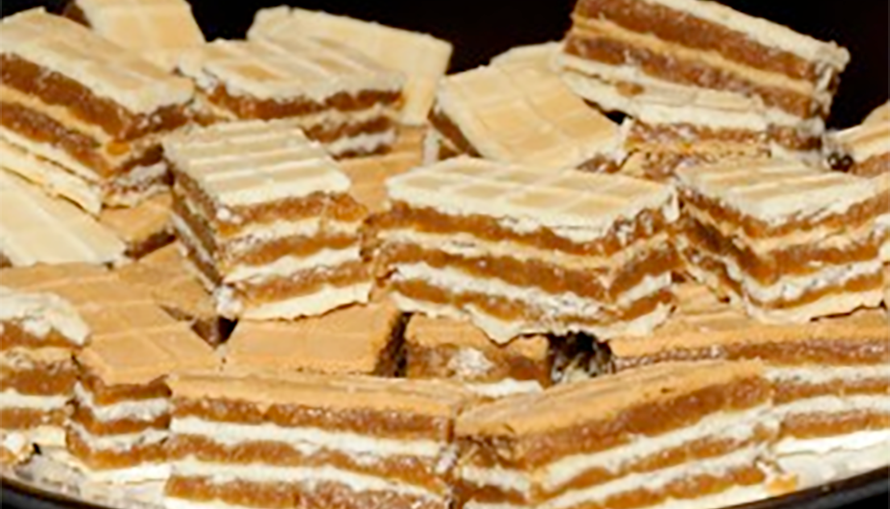 Griláž (Caramel Nut Wafers) is a traditional Slovakian recipe for a classic biscuit of waffled wafers sandwiched with a nut and condensed milk filling that's set over night before slicing into fingers. The full recipe is presented here and I hope you enjoy this classic Slovakian version of: Caramel Nut Wafers (Griláž).