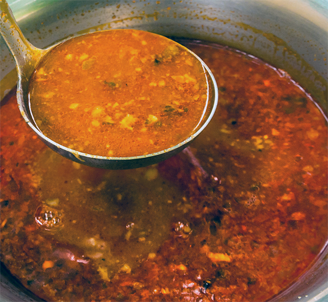 Continue boiling over fairly high heat for 30 minutes (uncovered); do not stir during this time. About 25 minutes into cooking add the remaining paprika and season with salt to taste. Remove the carp head and tail then divide the soup between four soup plates.