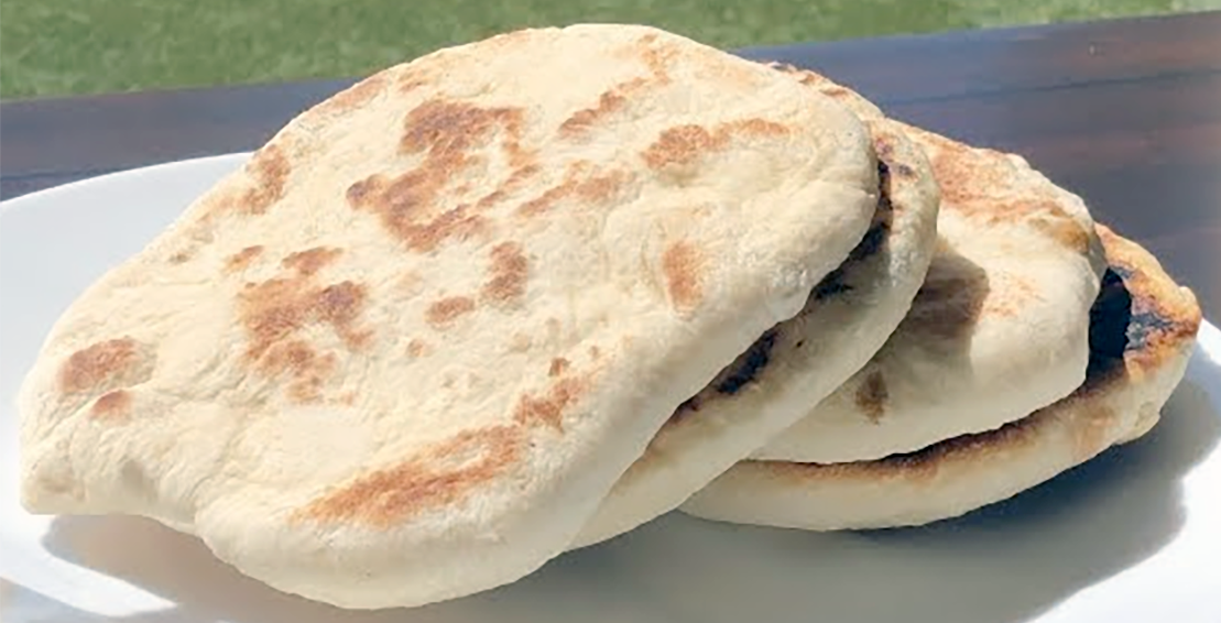 Israeli style pita is a very thick flatbread that’s fluffy and chewy.