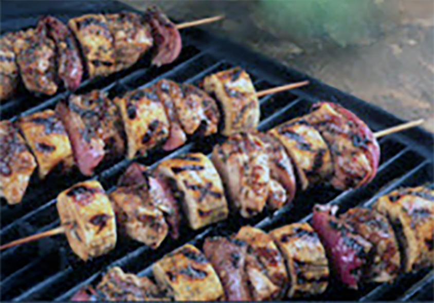 Jerked Goat and Plantain Kebabs is a traditional Jamaican recipe for a classic dish of cubed goat meat, plantains and onions pieces threaded onto skewers that are dusted with jerk seasoning and cumin before being cooked on a barbecue or under a grill. The full recipe is presented here and I hope you enjoy this classic Jamaican version of: Jerked Goat and Plantain Kebabs.