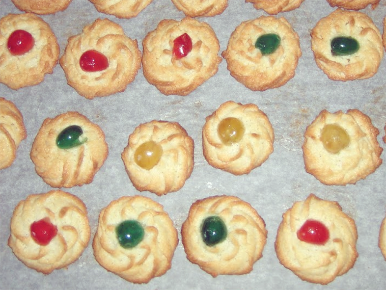 Kransekage Konfekt (Almond Allsorts) is a traditional Danish recipe for a classic small biscuit of a ground almond, caster sugar and egg white paste that's piped as small rosettes, with a glacé cherry inserted in the centre before baking. The full recipe is presented here and I hope you enjoy this classic Danish version of: Almond Allsorts (Kransekage Konfekt).