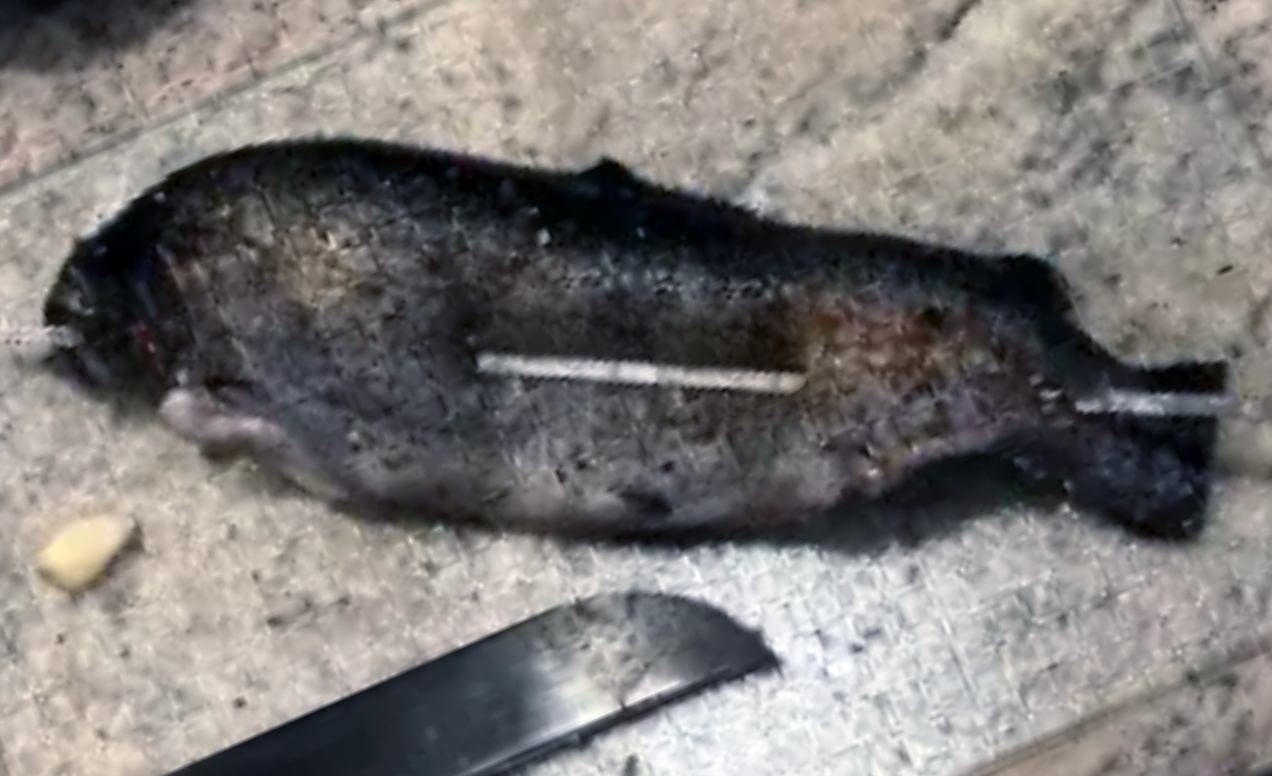 Gently skewer the fish to keep it together and allow you to turn it easily.