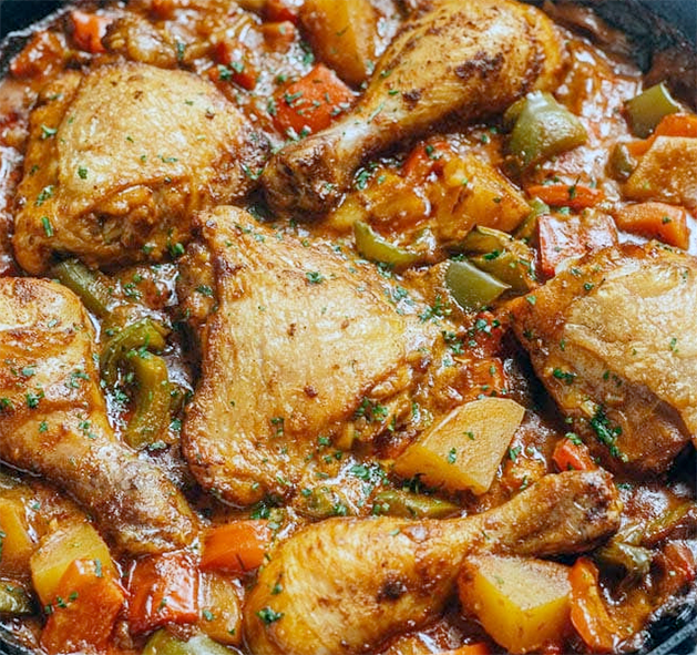 African Chicken (Macanese One-pan Chicken Curry) is a traditional Macanese (from Macau) recipe for a classic curry of chicken and bell peppers and potato in a Madras curry base with peanut butter and coconut milk. The full recipe is presented here and I hope you enjoy this classic Maccanese dish of: Macanese One-pan Chicken Curry (African Chicken).