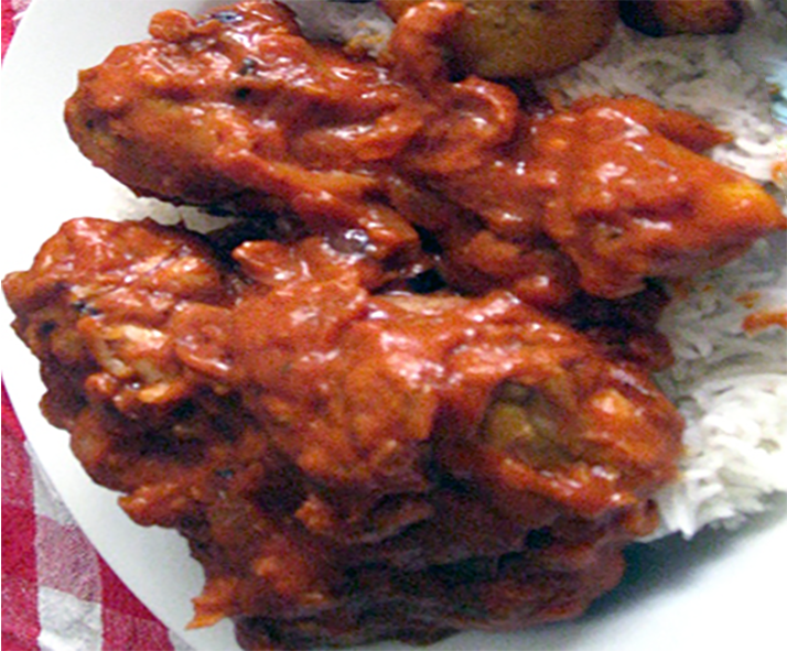 If peanut butter is used then the dish is transformed into Muamba Nsusu. Serve with Baton de Manioc, FuFu or rice.