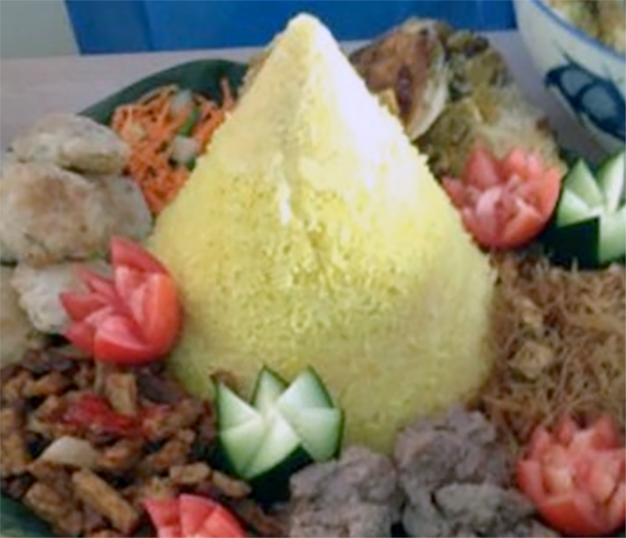 Nasi Kuning is a traditional Indonesian recipe for a classic accompaiment of yellow rice served as a cone-shaped centrepiece that's usually accompanied by a range of other dishes. The full recipe is presented here and I hope you enjoy this classic Indonesian version of: Yellow Rice (Nasi Kuning).