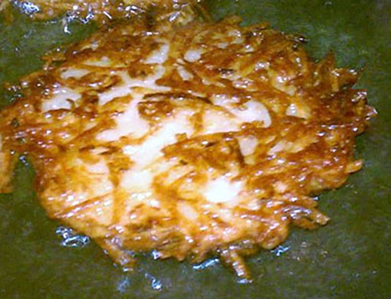 New Year's Eve Latkes: A German recipe for a vegetarian fritter of grated potatoes and onions bound with flour that are typically served on New Year's Eve accompanied by sour cream.
