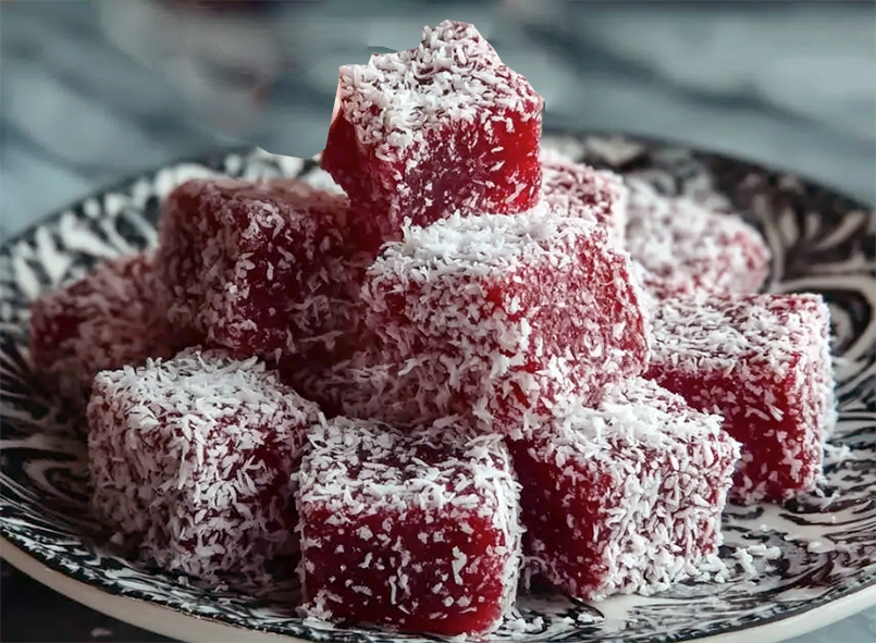 Pomegranate Lokum (Pomegranate Turkish Delight) is a traditional Turkish recipe for a snack of sweetmeat made from fresh pomegranate juice thickened and set with cornflour that's rolled in desiccated coconut powder before serving. The full recipe is presented here and I hope you enjoy this classic Turkish version of: Pomegranate Turkish Delight (Pomegranate Lokum).