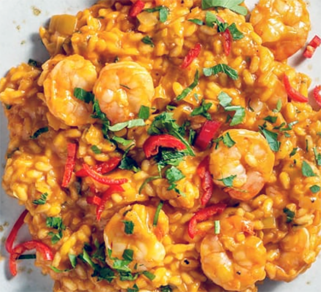 Prawn, Sweet Cicely and Tomato Risotto is a traditional Italian recipe for a classic risotto of rice cooked in a wine, tomato and vegetable stock (or chicken stock) base until creamy that's flavoured with sweet cicely leaves and finished with prawns. The full recipe is presented here and I hope you enjoy this classic Italian version of: Prawn, Sweet Cicely and Tomato Risotto.