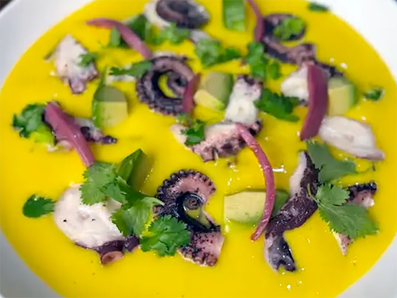 Pulpo con salsa cítrica de mango (Octopus with citrus mango sauce)