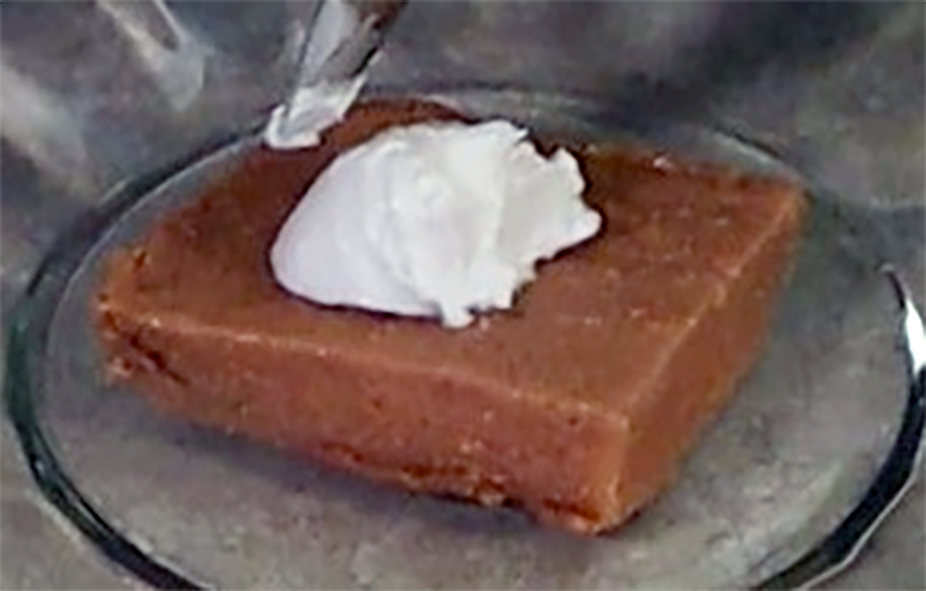 When serving, slice into squares and top each serving with a dollop of coconut cream. You can add other toppings for extra flavour and texture.