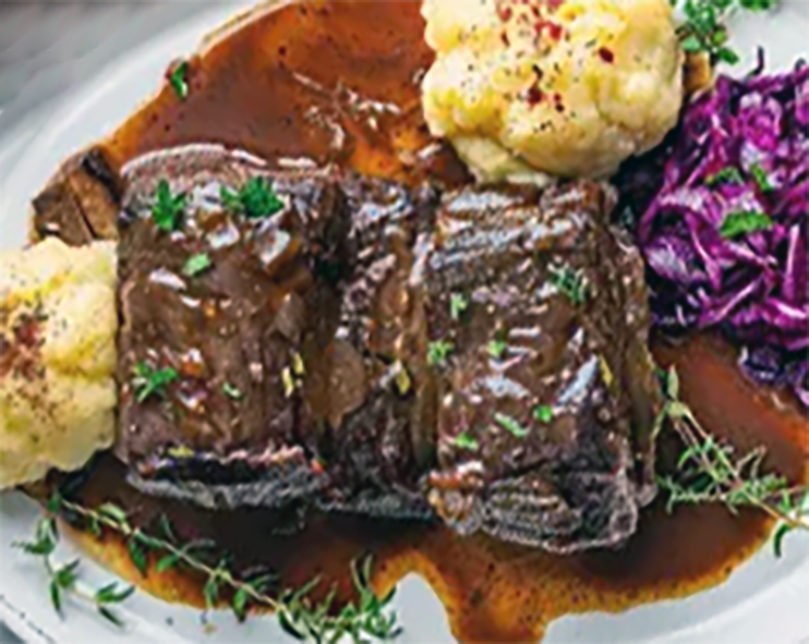 Rheinischer Sauerbraten (Rhenish Stewed Pickled Beef) is a traditional German recipe for a classic dish of beef marinated in a vinegar-based stock that's braised and served with a sauce made from the marinade, black bread, raisins and cream thickened with flour. The full recipe is presented here and I hope you enjoy this classic German version of: Rhenish Stewed Pickled Beef (Rheinischer Sauerbraten).