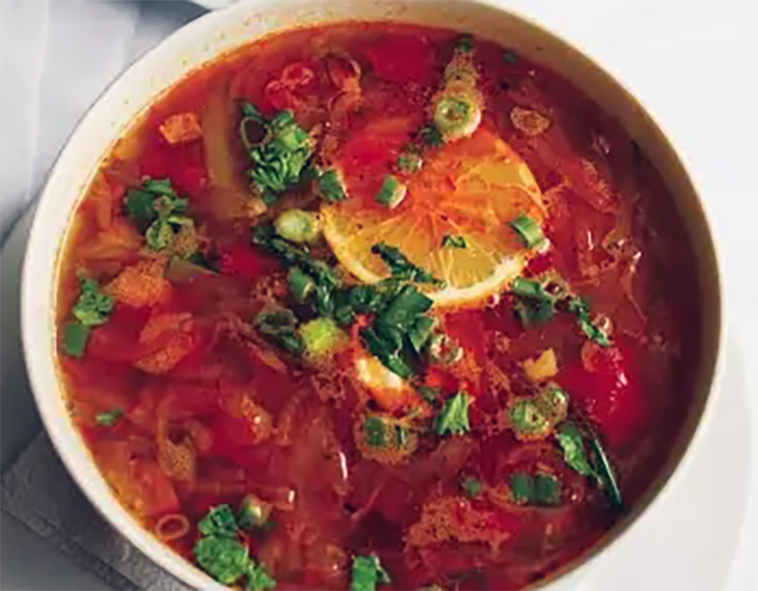 Ladle into bowls and serve garnished with parsley, spring onions, and sour cream.