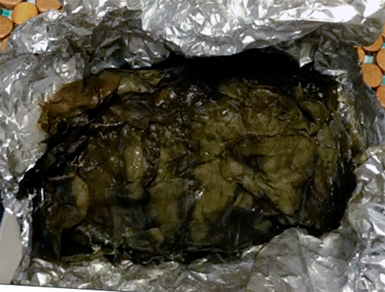 Fold the leaves into make a parcel and fold the aluminium foil in on top to firmly enough to keep the shape.