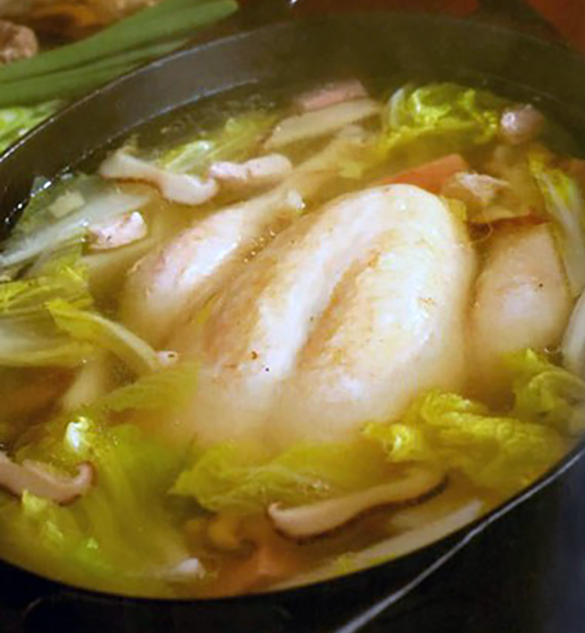 This is a classic Chinese recipe for a soup of whole chicken boiled and served in a broth made of the chicken with ham, mushrooms, bamboo shoots, ginger, cabbage and pork.