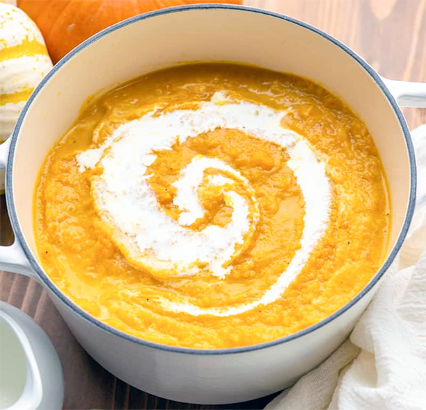 Creamy Pumpkin Soup is a traditional American recipe for a classic soup of onions, celery and pumpkin cooked in chicken broth that's finished with sour cream. The full recipe is presented here and I hope you enjoy this classic American version of: Creamy Pumpkin Soup.