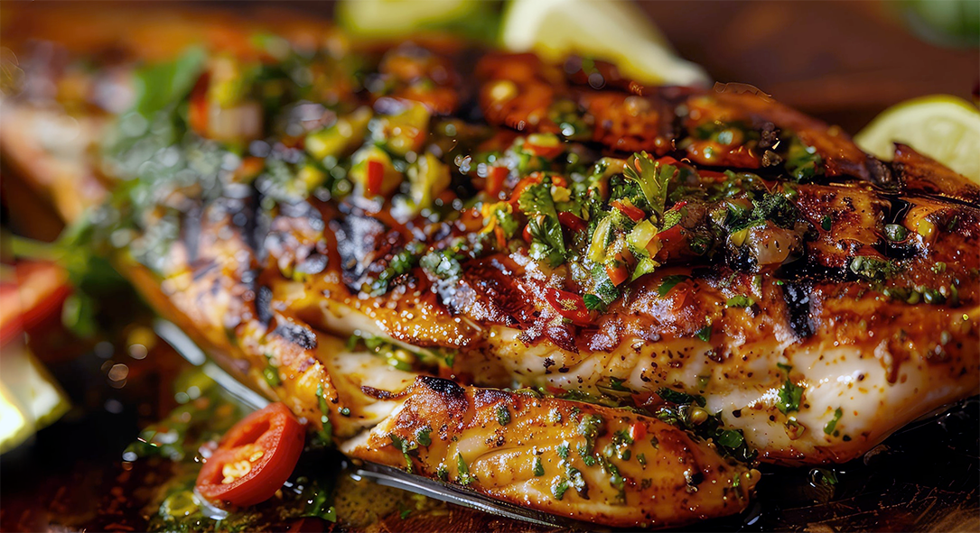 Marinate the fish in this mixture for at least 1 hour (best done over night in the refrigerator). Remove the fillets from the marinade then place on a barbecue or under a grill (broiler) and cook for about 3 minutes per side, basting frequently with the marinade whilst cooking, turning carefully only once.