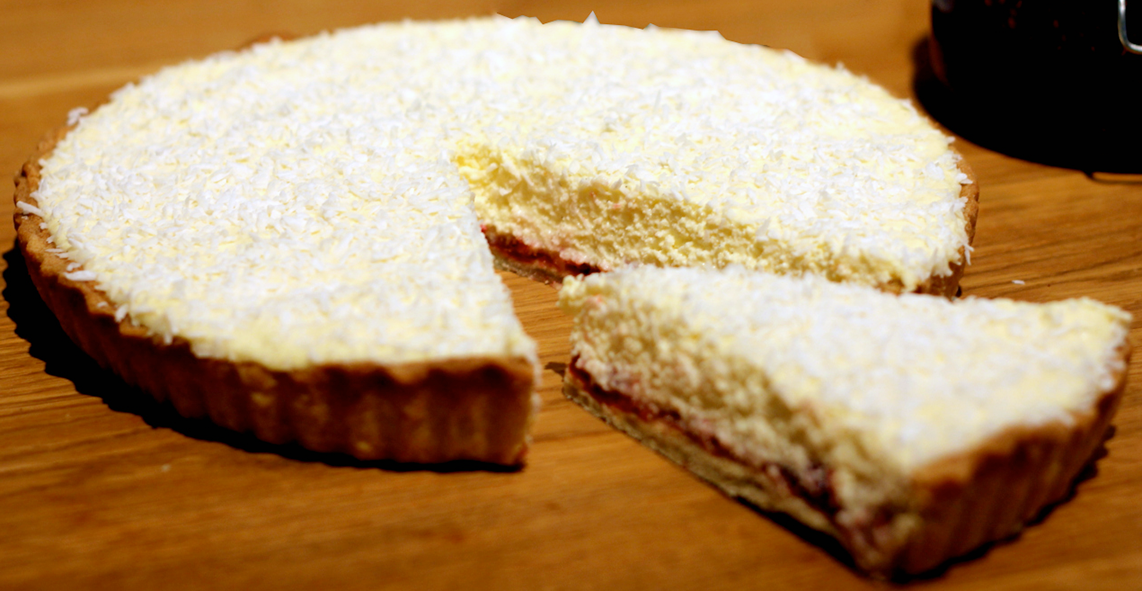 Manchester Tart is a traditional English recipe (from Lancashire) for a classic dessert of a pastry base topped with jam, raspberries, desiccated coconut, custard and more coconut. The full recipe is presented here and I hope you enjoy this classic English dish of: Manchester Tart.