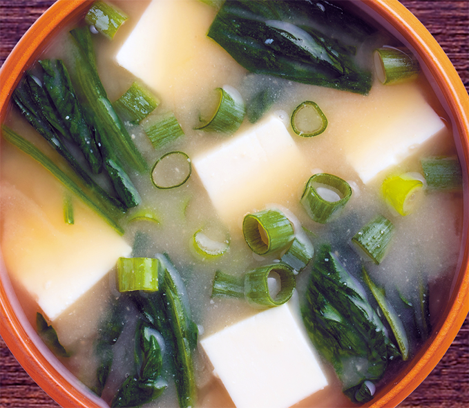 Add the diced tofu to the pan along with the wakame. Bring the mixture to a boil then take the pan off the heat and add the chopped spring onions. Ladle into warmed soup bowls and serve immediately.