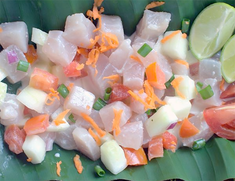 I’a ota ha’ari (Poisson Cru) is the quintessential Tahitian (and French Polynesian) dish showcasing the island’s love for fresh seafood. This raw fish salad combines diced raw tuna marinated in zesty lime juice with creamy coconut milk, creating a refreshing and light starter.