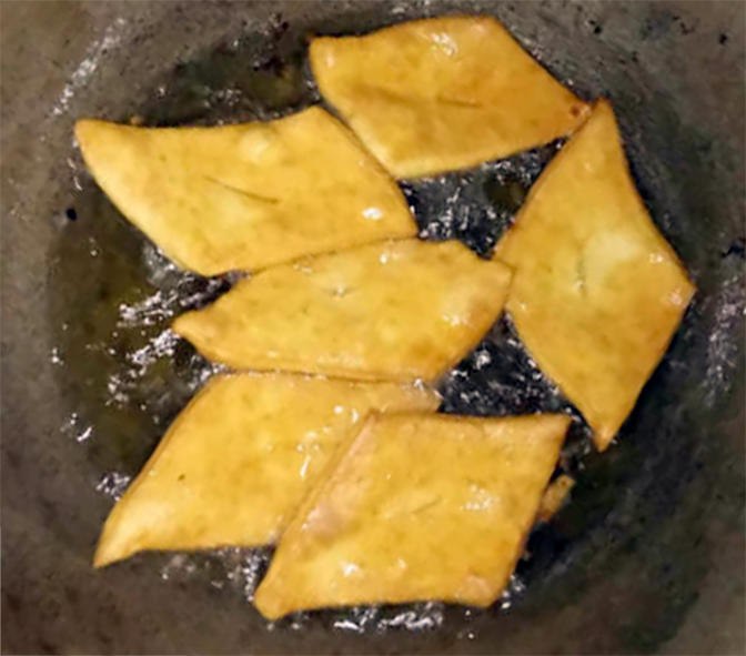 Place a wok or deep pan over medium heat. Pour in oil so that it's 4cm deep. When the oil is hot, drop in the pişme and fry, stirring continuously with a slotted spoon.