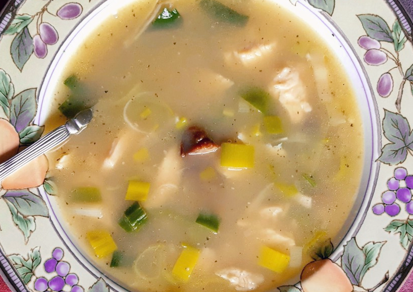 Cock-a-Leekie Soup is a traditional British recipe, based on Mrs Beeton's recipe of 1861, for a classic soup of boiled chicken and leeks where the bird is carved and served in a tureen with the leek-infused cooking liquid. The full recipe is presented here and I hope you enjoy this classic British version of: Cock-a-Leekie Soup.