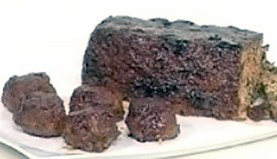 Dress-up Dress-down Meatloaf: An Australian recipe for a pork and veal meatloaf combination, with mini meatloaves served with a large meatloaf containing prunes, all of which are glazed with a tomato sauce coating.