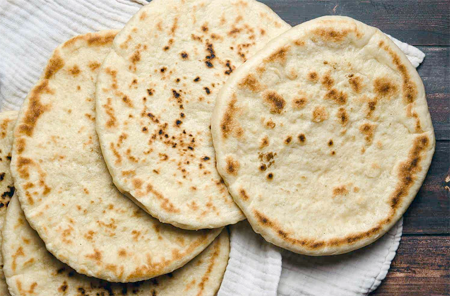 To give it more colour, when you flip your pita bread, press it lightly into the pan with a wooden spoon.