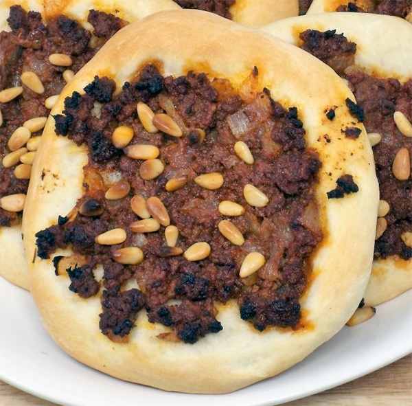 Lebanese Lamb and Pine Nut Pizza (Lebanese Lamb and Pine Nut Pizza) is a traditional Lebanese restaurant-style recipe for a pizza topped with a Lebanese-flavoured tomato sauce, fried lamb and toasted pine nuts. The full recipe is presented here and I hope you enjoy this classic Lebanese dish of: Lebanese Lamb and Pine Nut Pizza (Shifa).