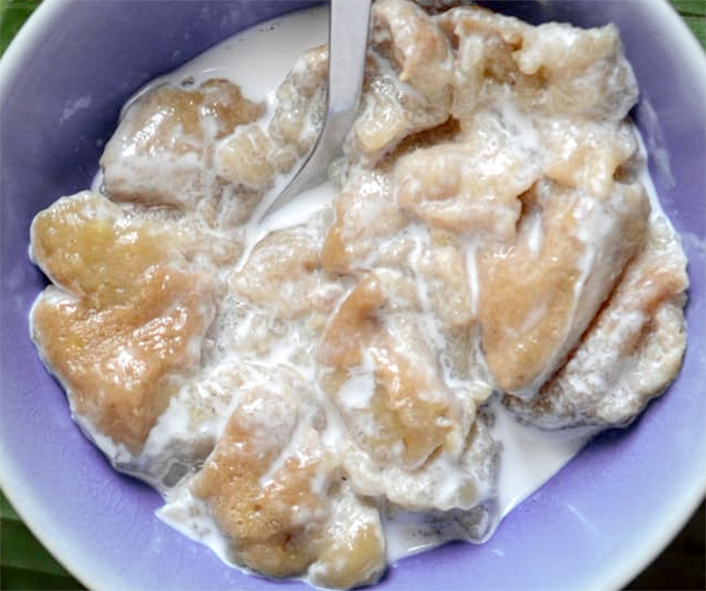 Cut into cubes or strips and either place in a large bowl or individual dessert bowls. Serve with well chilled coconut milk and a dollop of coconut cream.