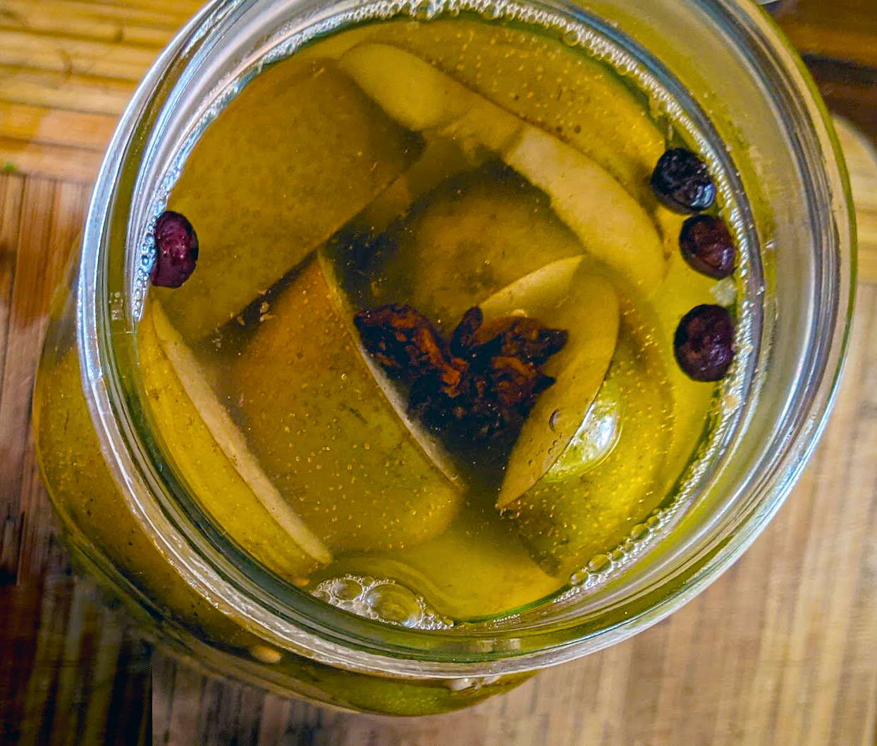 If you use brightly-coloured lids and ribbons, a mix of these fruit pickles makes an excellent Christmas gift.