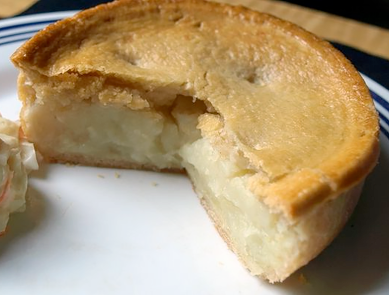 This is a classic Lancashire recipe for a potato and onion pie that's also known locally as 'Friday Pie' or 'Catholic Pie'. It was traditionally served on Fridays to comply with the Catholic rule of not eating meat on that day and is traditionally served with pickled red cabbage and/or beetroot.
