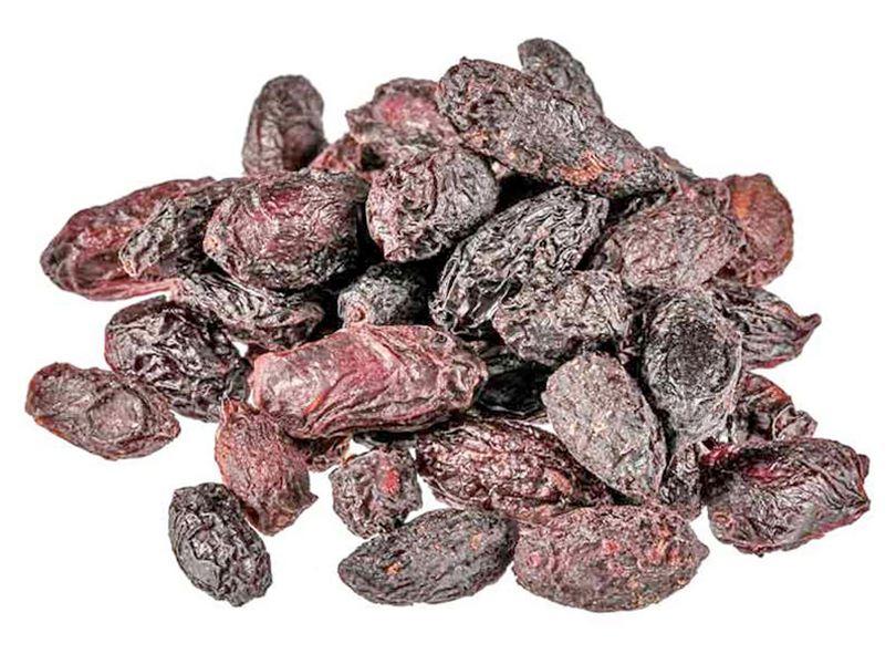 Today, dried Cornelian Cherries are mostly produced in Iran as the fruit of the Cornelian Cherries ripens on the bough there. Indeed, the country is the largest producer of dried Cornelian Cherries. However, dried seeded Cornelian Cherries were used in British cuisine at least from Elizabethan to Victorian times and the fruit was valued for its acerbic nature as an intestinal tonic. Whether the medicinal benefits have any merit, this is still an useful dried store-cupboard staple, especially as so many gardens have Cornelian Cherry hedges. Typically Cornelian Cherries dry at a ratio of 4:1, so that 4kg of ripe barberries yield 1kg of dried fruit. Please note that for this recipe you need the fully ripe fruit which have a ruby red colour. In Britain, however, they do not ripen fully until they have fallen from the tree. Collect them when they have fallen, place on newspaper in a box and set on a sunny windowsill to ripen.
