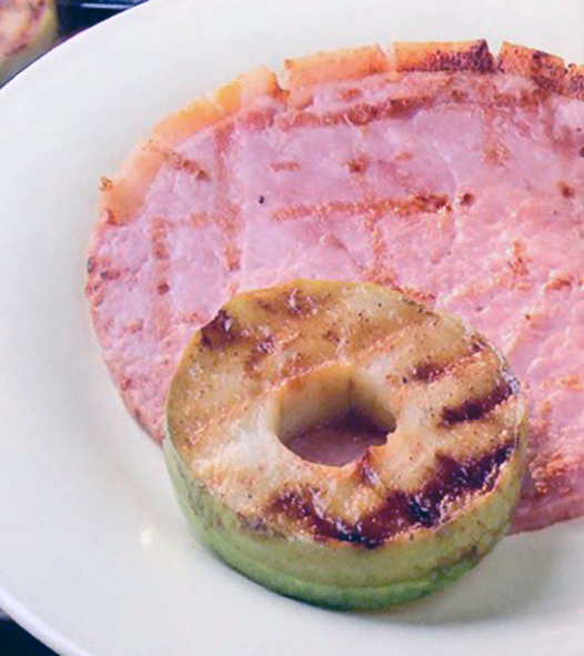 Serve the gammon steaks with the apple slices as a garnish.