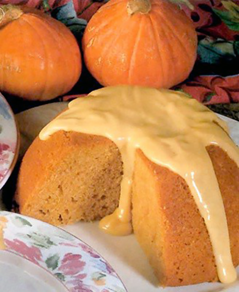 Golden Syrup Pumpkin Pudding: A British recipe for a steamed pudding made with a flour and pumpkin batter that's served with custard and which makes and excellent dessert for Halloween.