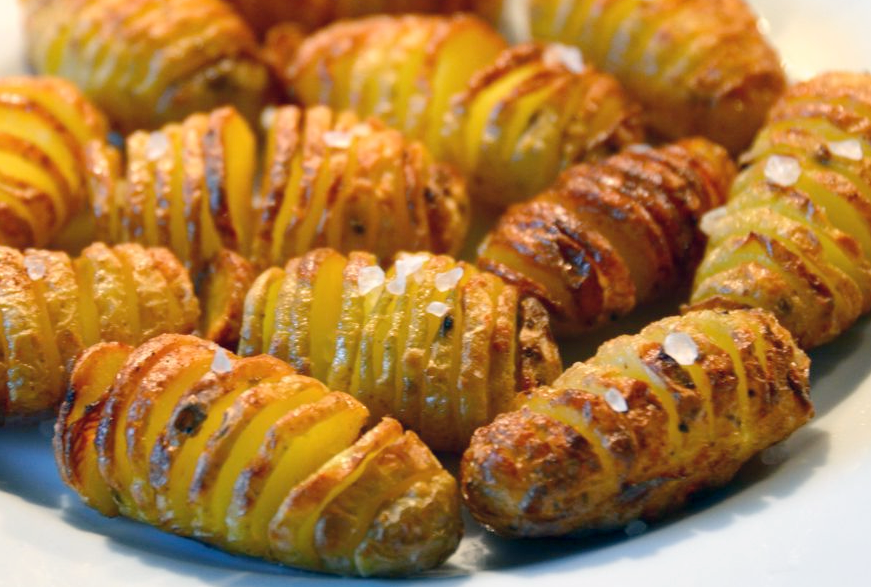 Hasselback Potatoes is a traditional British recipe for a classic accompaniment of potatoes that are sliced across the top, coated in butter, dusted with breadcrumbs and Parmesan cheese and oven roasted. The full recipe is presented here and I hope you enjoy this classic British version of: Hasselback Potatoes.